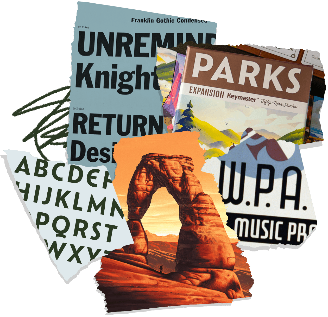 And the fonts have found their way to other formats and mediums as well! Fifty-Nine Parks has partnered with Keymaster Games to produce a board game that make use of the fonts. It has been wonderful seeing the ways Catlin Sans has been put to use in the packaging and design of the Parks game and its expansion packs.